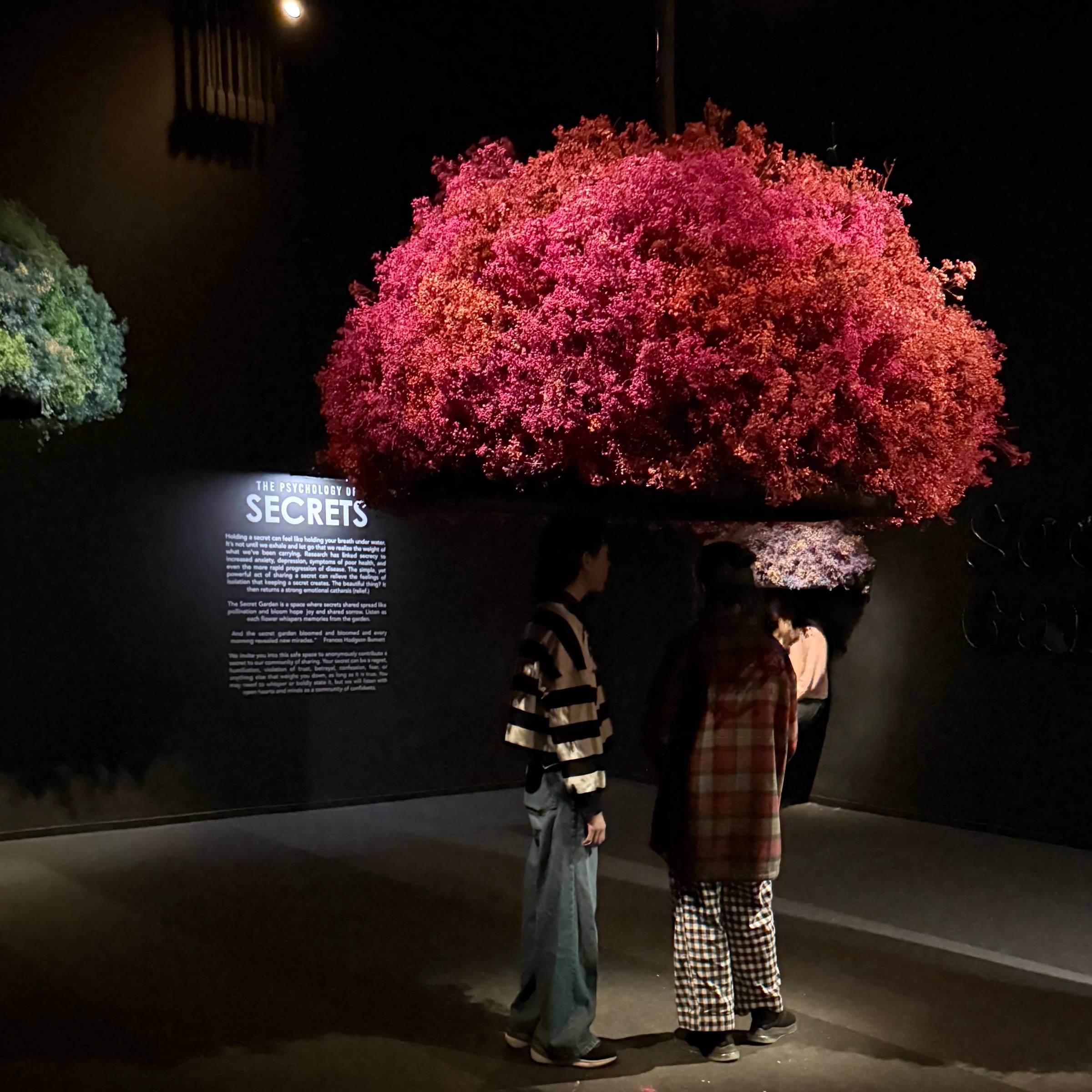 The artist statement captures the spirit of it beautifully: "The Secret Garden is a space where secrets shared spread like pollination and bloom hope, joy and shared sorrow." It also touches on the psychology of secrecy — how keeping secrets can fuel anxiety and depression, while sharing them can lift the isolation that comes from carrying something alone. |